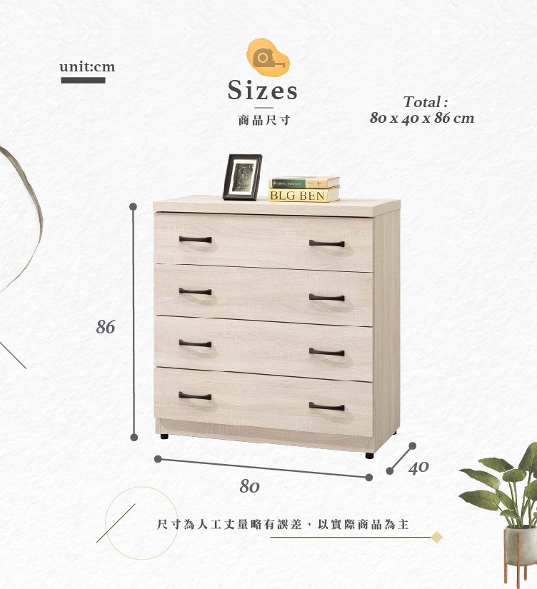 AS雅司-卡巴歐鋼刷白四斗櫃-80*40*86cm