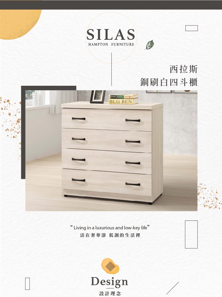【Hampton 漢汀堡】西拉斯鋼刷白四斗櫃