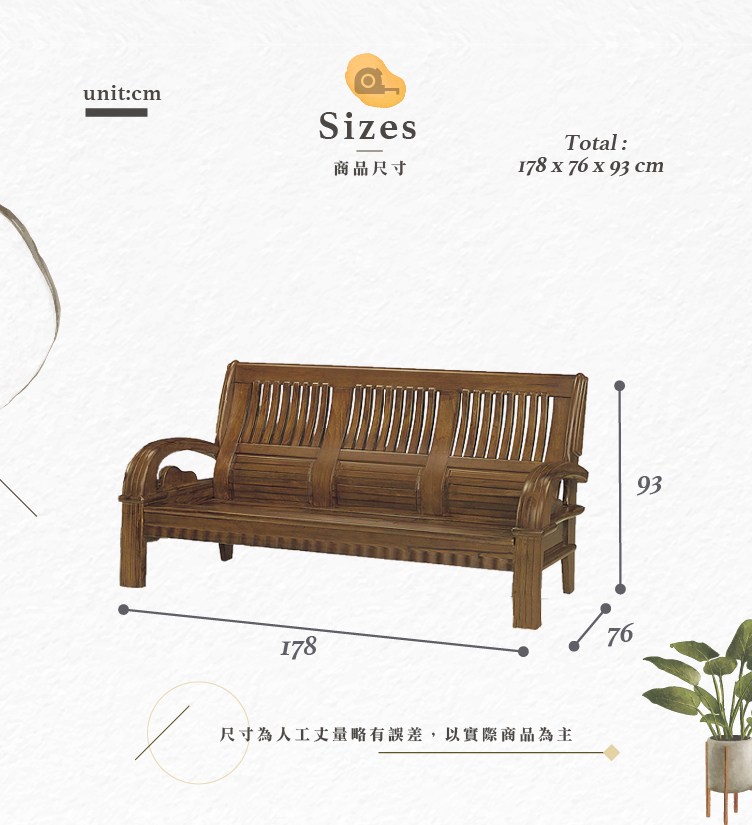 文創集 蘿法黑透氣皮革三人座沙發椅-174x75x81cm免組