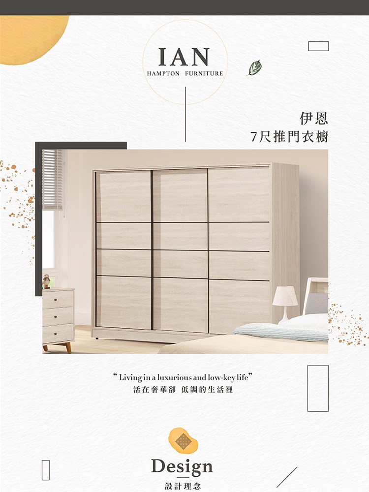【IDEA】森特4X7尺木質滑門衣櫃/衣櫥(2色任選)北歐橡木