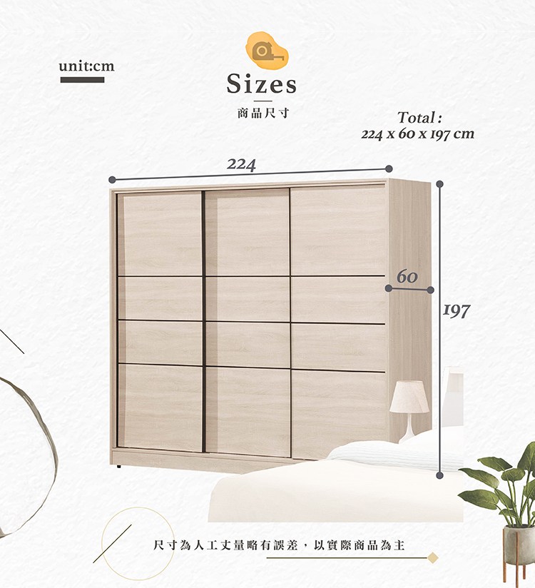 hoi!林氏木業現代簡約滑門1.8M衣櫃組合 JC3D-A+JC6D邊櫃