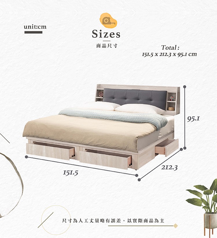 AS雅司-松樂5尺四抽收納床底-152x188x26cm--只有床底
