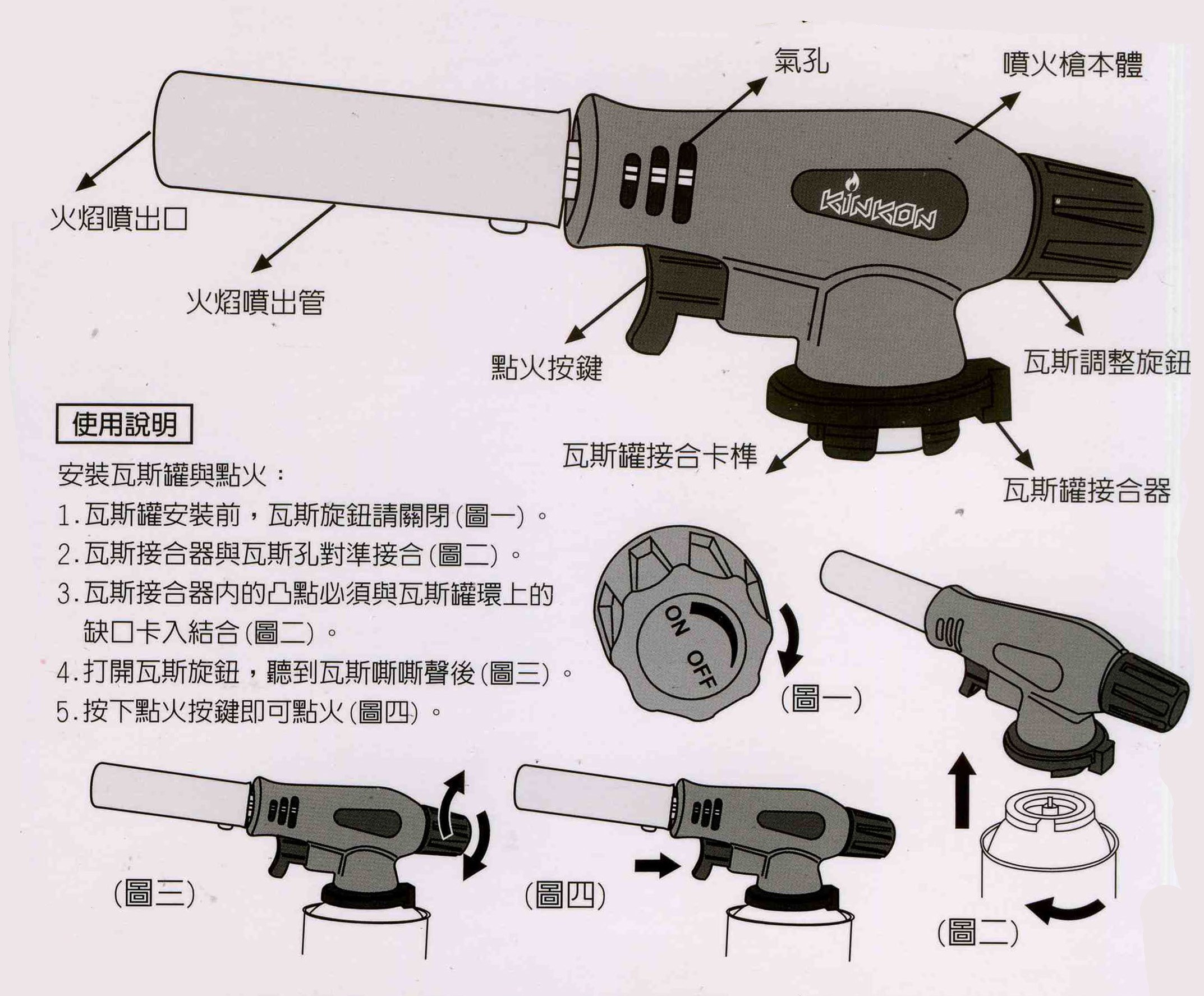 請先將點火槍點火預熱一分鐘後,方可倒立或搖晃使用
