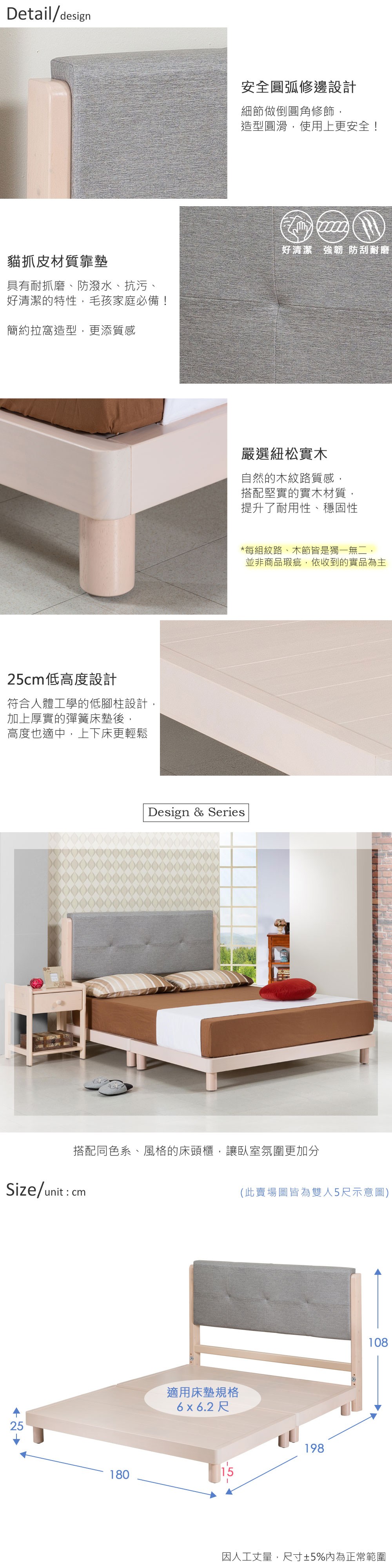 Homelike 喜家居雙人加大6尺貓抓皮實木低床架組(2221)