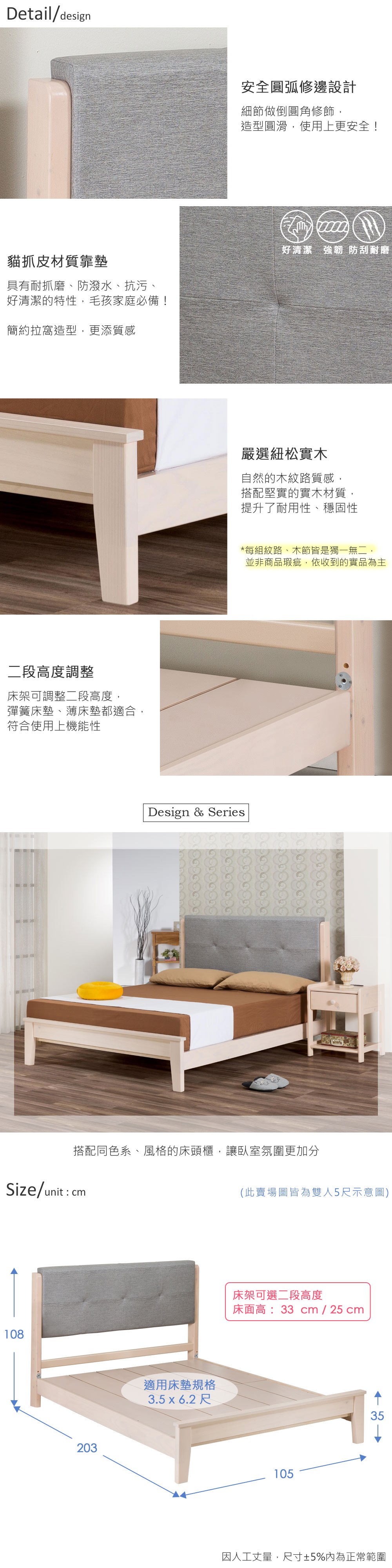 【本木】南原 貓抓皮臥室二件組-雙人5尺 床片+暮春架高雪松