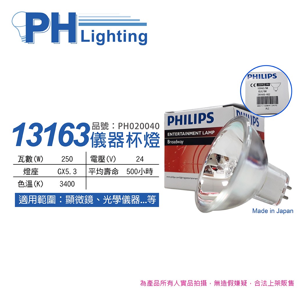 PHILIPS飛利浦 13163 24V 250W GX5.3 ELC 儀器杯燈 _ PH020019