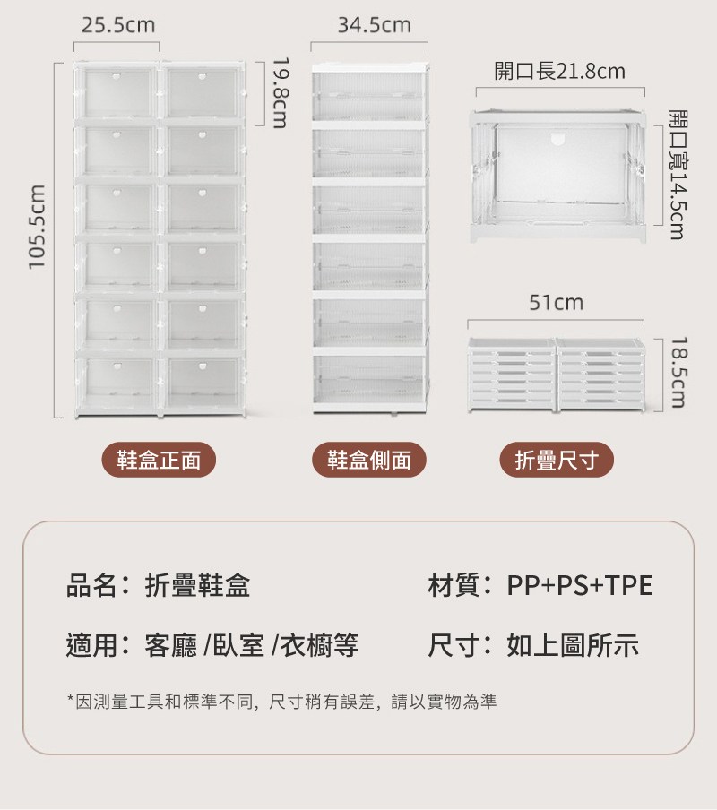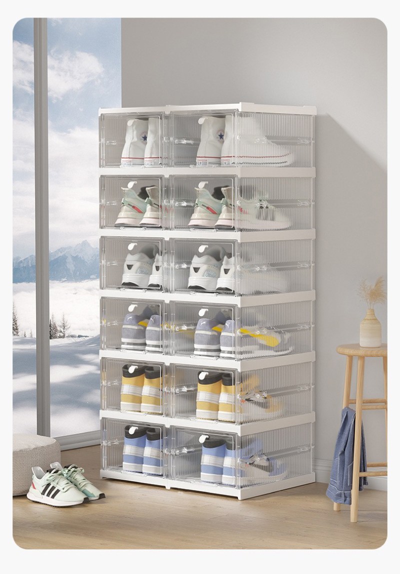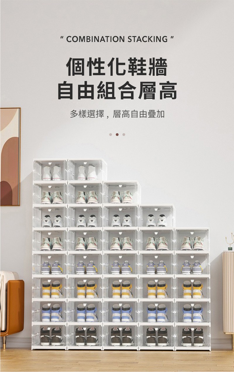 免工具可折疊 12格 磁吸式透明收納 防塵鞋櫃 鞋盒