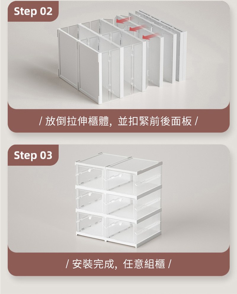 【好氣氛家居】2入組免安裝摺疊伸縮收納鞋盒/鞋櫃 鞋架(儲物櫃 收納櫃/2組共6層)