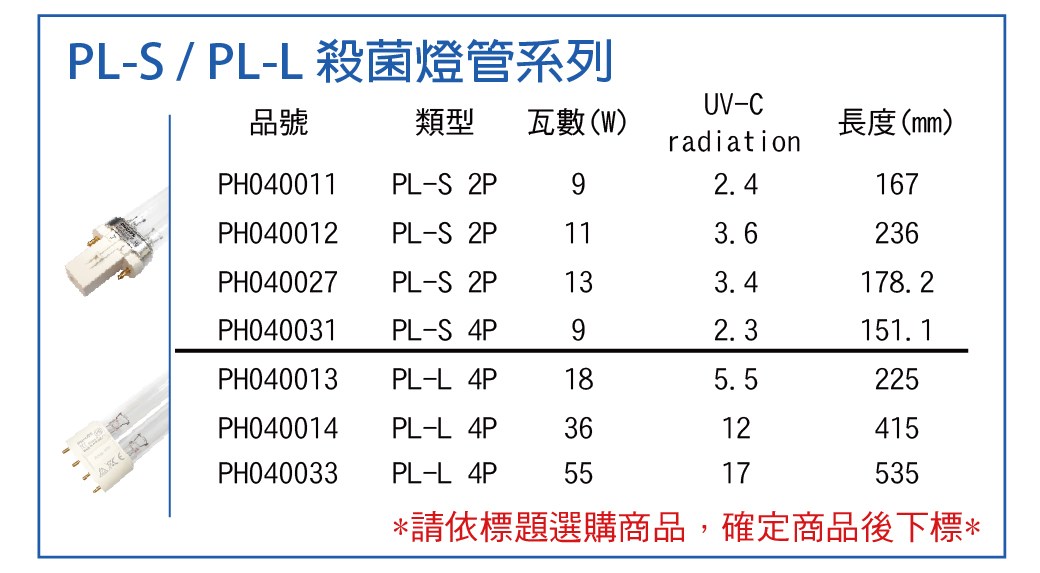 2入 PHILIPS飛利浦 TUV 13W PL-S UVC 殺菌燈管