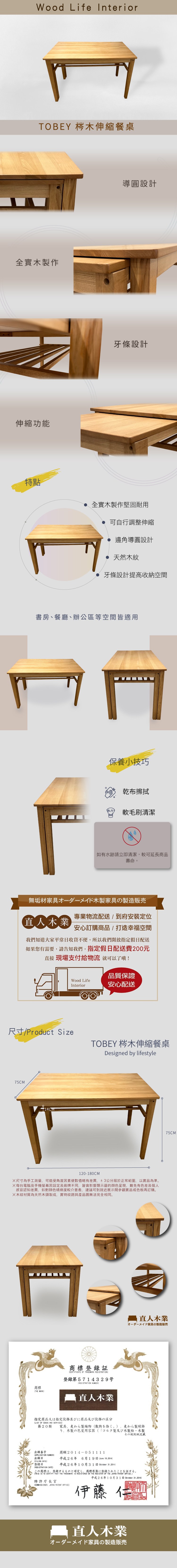 本木-加爾 5尺實木餐桌5尺