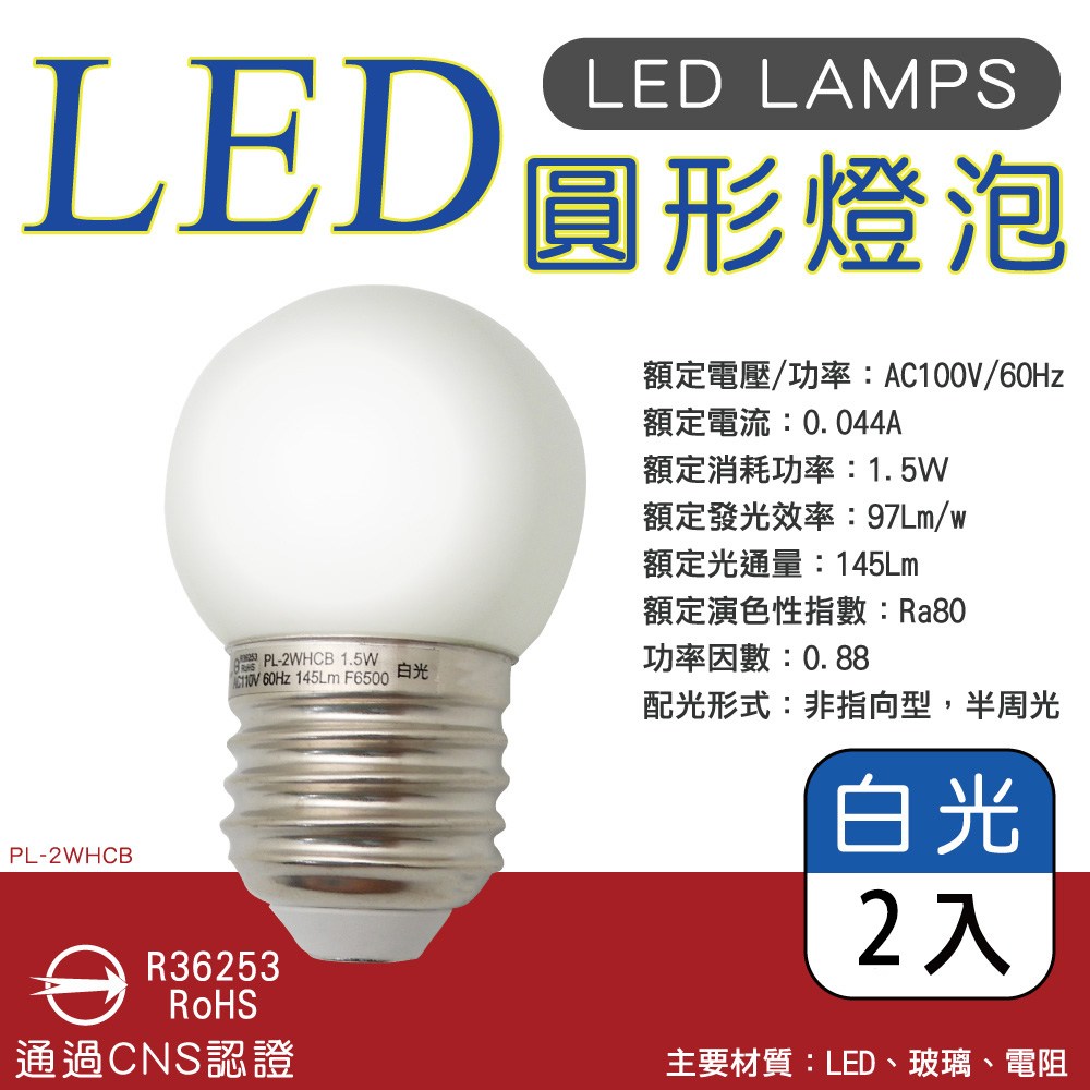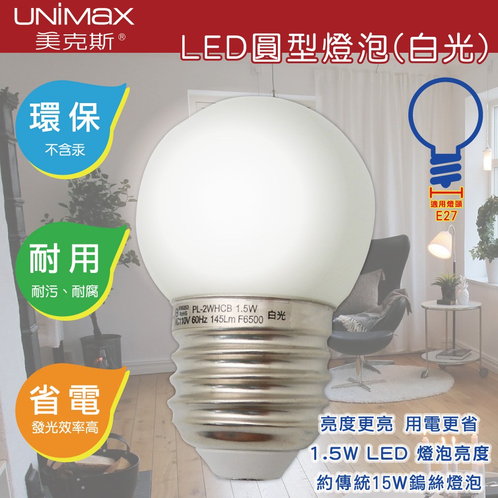 【美克斯UNIMAX】PL-2WHCB白光LED圓形燈泡1.5W 2入