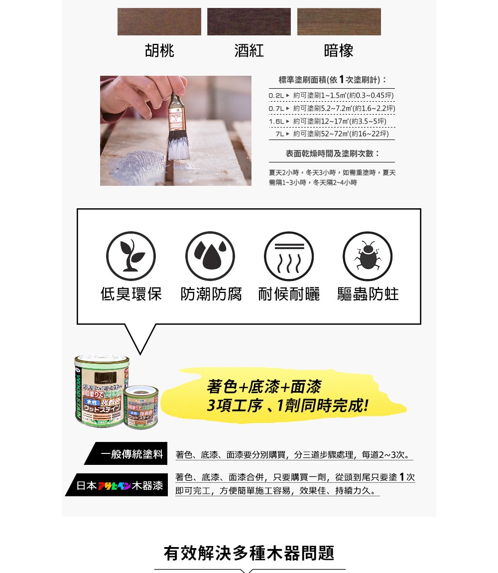 Asahipen 室內外強著色護木漆0.2L 胡桃