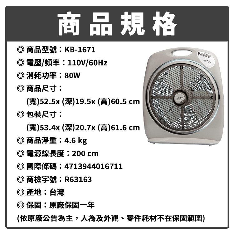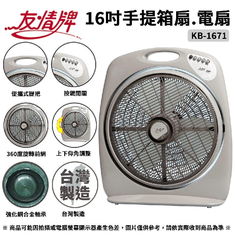 友情牌 16吋手提箱扇.涼風扇.電風扇.電扇 KB-1671 ~台灣製造