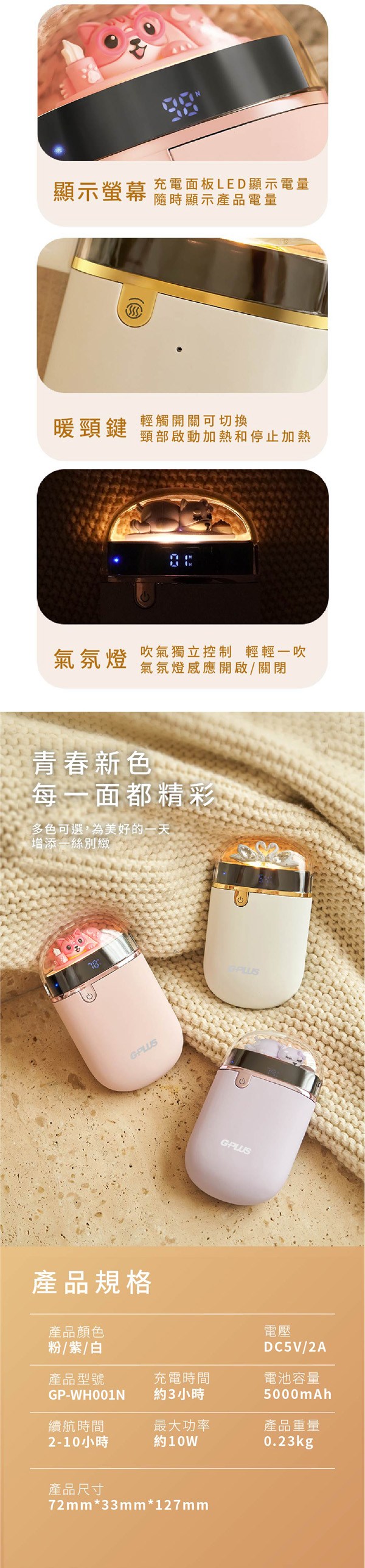 GPLUS 拓勤 暖蛋 頸掛電暖懷爐 GP-WH001N 粉色
