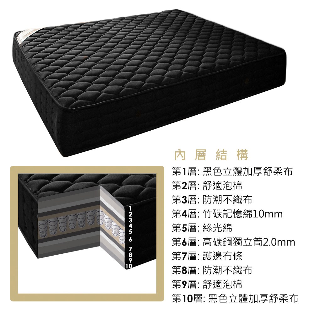 【obis】鑽黑系列奈米石墨烯竹炭記憶膠獨立筒無毒床墊3.5尺 單人