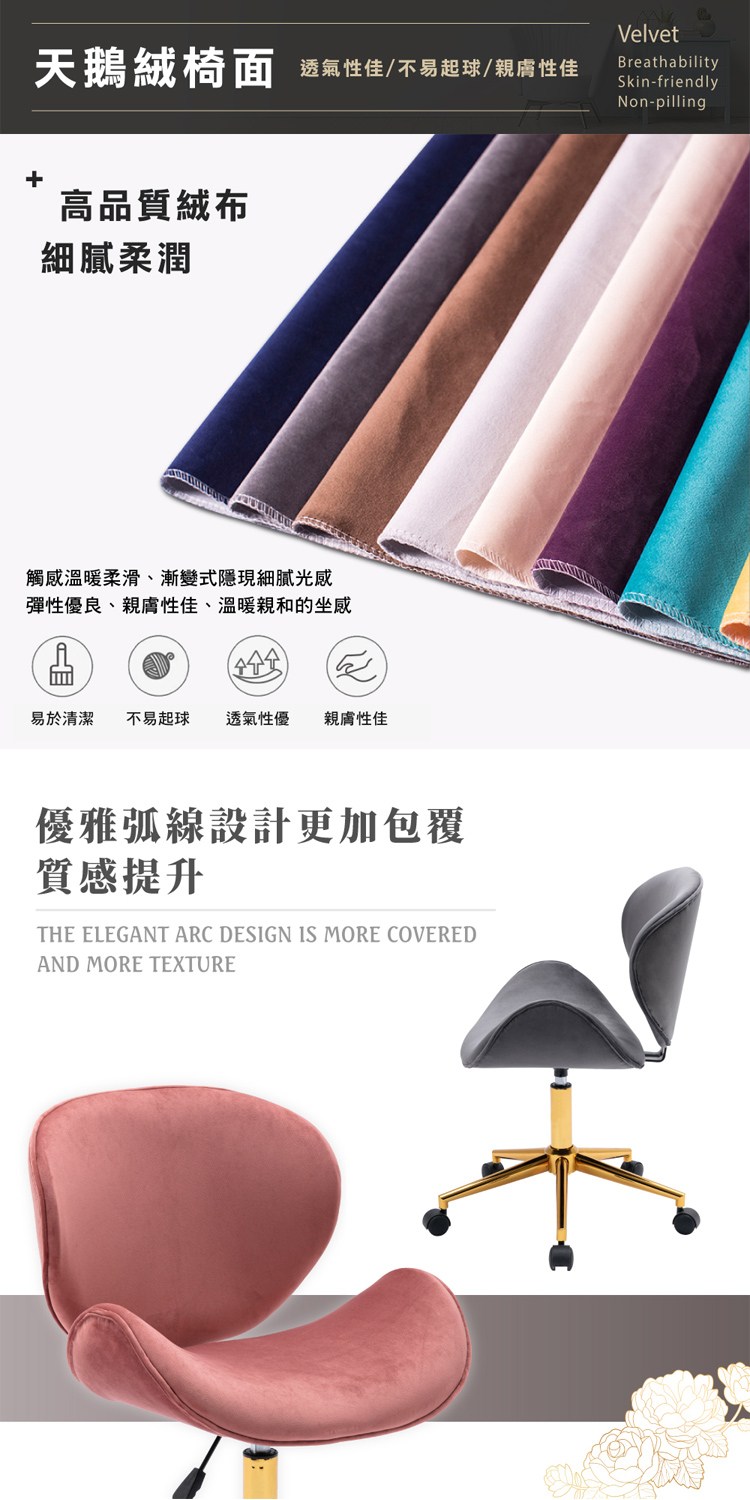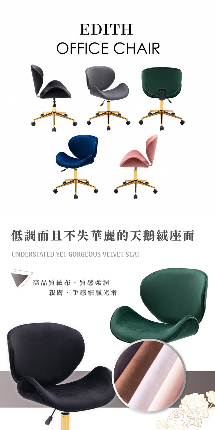 [E-home]Edith伊迪斯簡約絨布金腳電腦椅,時尚與古典的結合滿足生活品味,讓您空間瞬間耀眼起來。