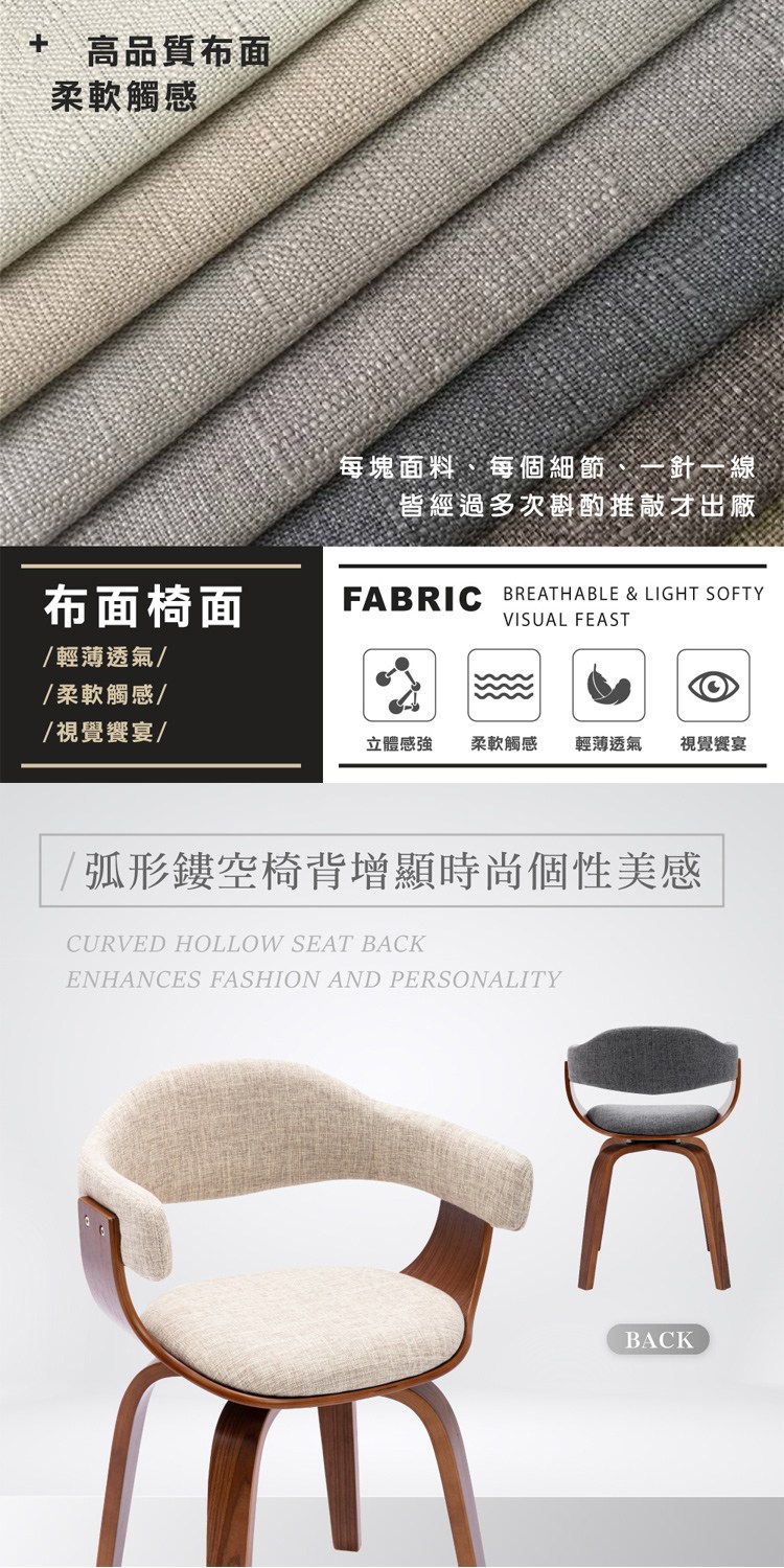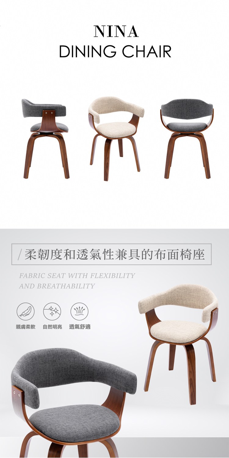 [E-home]Nina妮娜布面曲木可旋轉休閒餐椅,時尚與古典的結合滿足生活品味,增添室內設計亮麗的擺設。