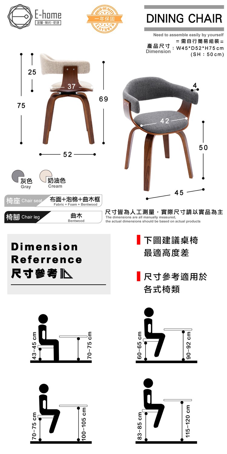 E-home Nina妮娜布面曲木可旋轉休閒餐椅-兩色可選