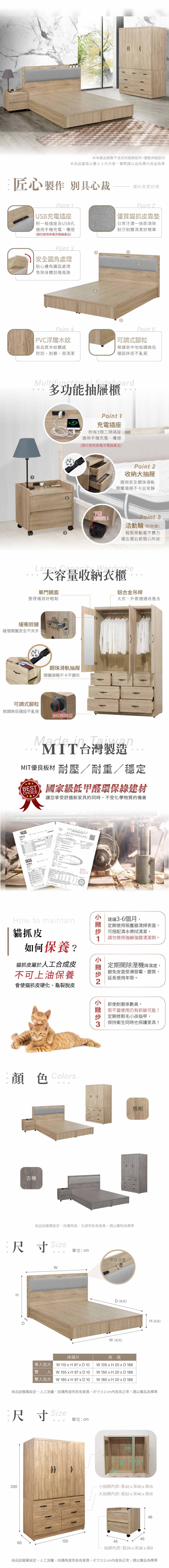 【本木】捷恩 貓抓皮臥室二件組-單大3.5尺 床片+六分底古橡