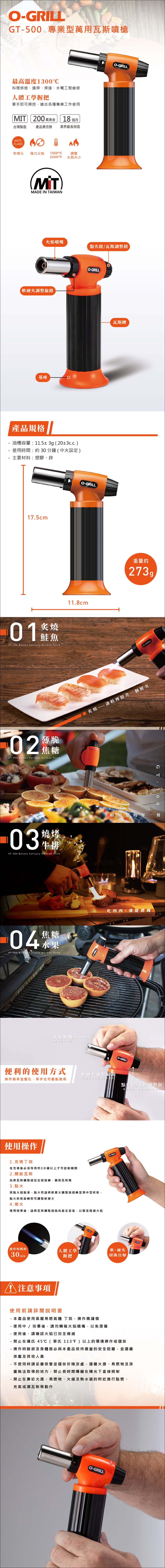 【O-GRILL】GT-500 專業型萬用瓦斯噴槍