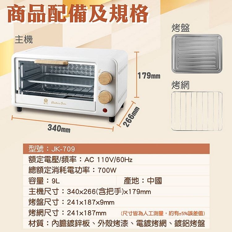 【晶工牌】9L電烤箱 JK-709