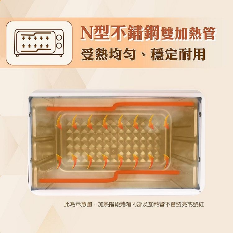 ◆ N型不鏽鋼雙加熱管,烤溫更均勻