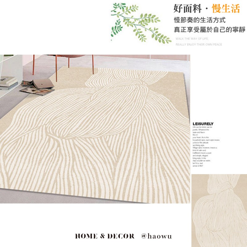 侘寂北歐抽象地毯客廳線條茶幾墊臥室毛絨床邊藝術日系INS風地墊