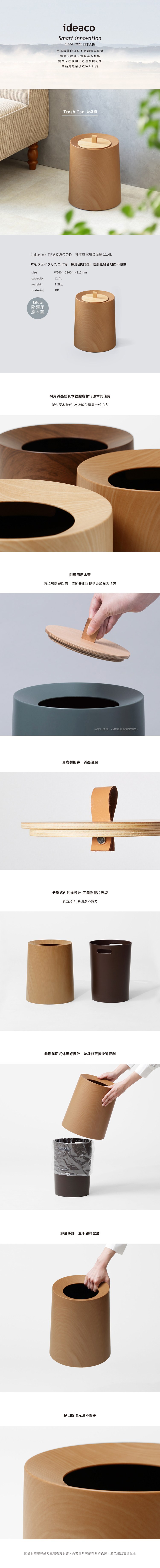 【日本ideaco】橡木紋家用垃圾桶-11.4L(附專用原木蓋)單一規格