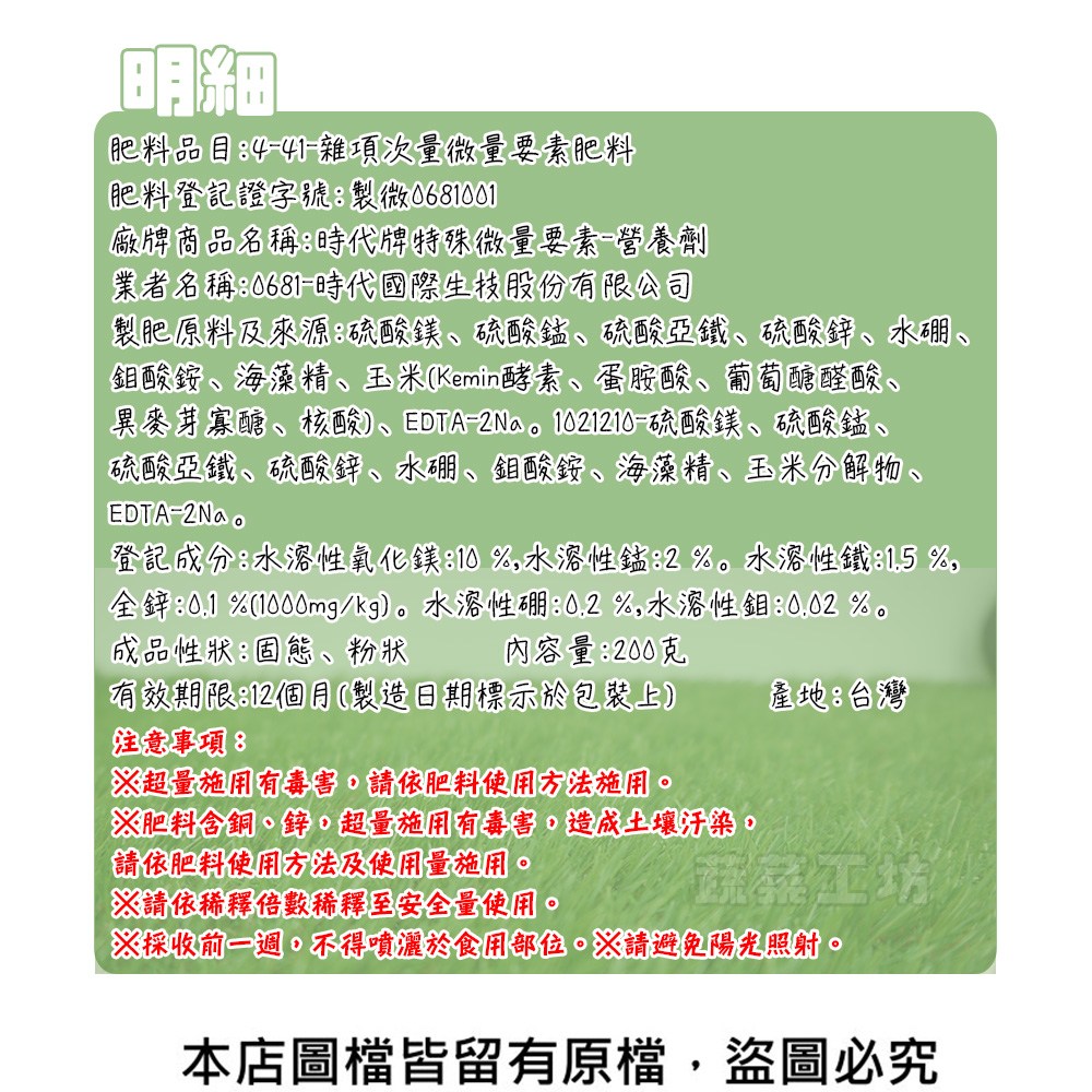 【蔬菜工坊】 時代牌特殊微量要素-營養劑 200克(鎂.硼.錳.鋅.鉬.鐵微量元素、有益菌)