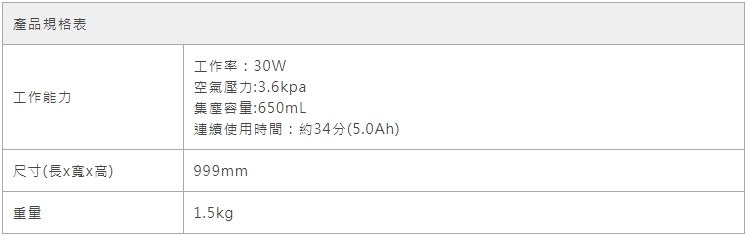 附件:主機*1、延長桿*1、地板吸嘴*1、尖吸嘴*1