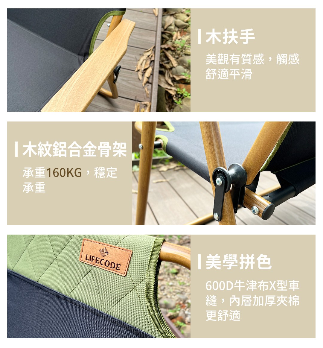 ◆ 木紋色的鋁合金支架+實木扶手,質感更加提升