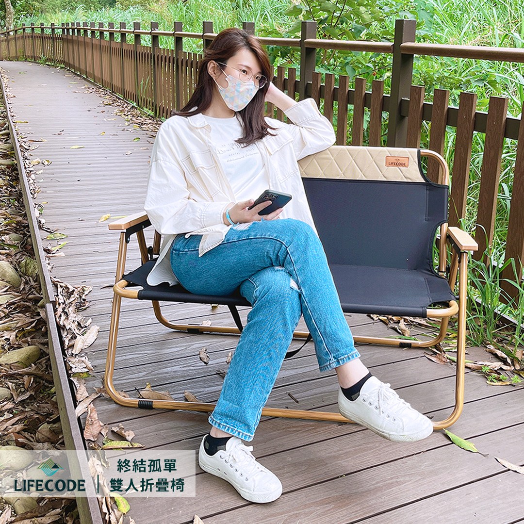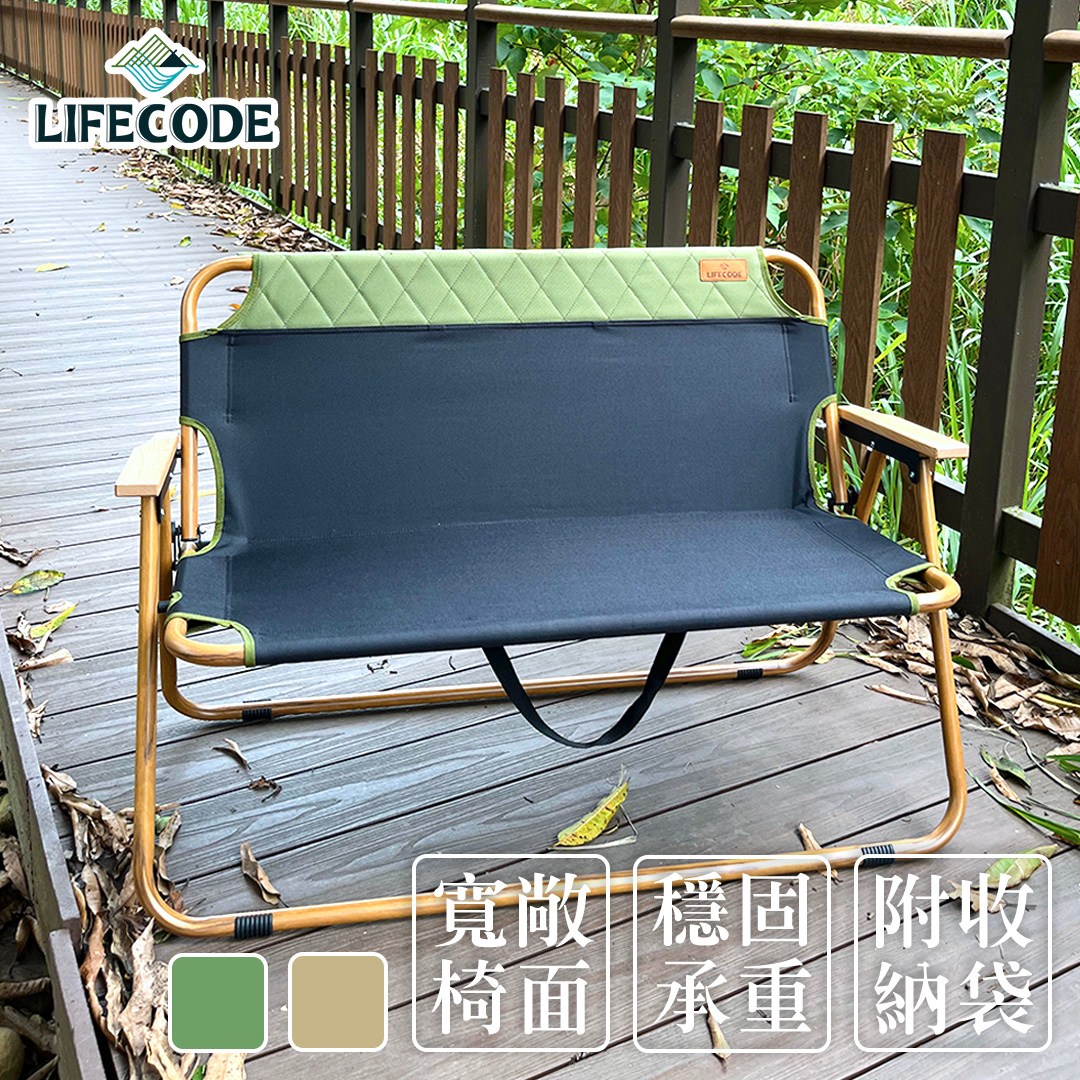 【LIFECODE】終結孤單雙人折疊椅/雙人武椅(提袋裝) 13020184軍綠/13020187沙色