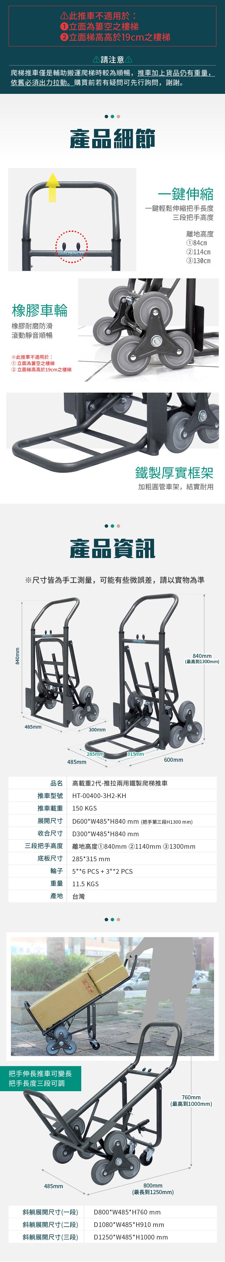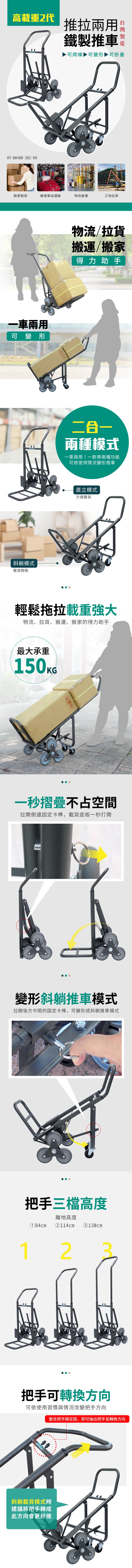 【大船回港】高載重2代-推拉兩用鐵製爬梯推車 (HT-00400-3H2-KH)