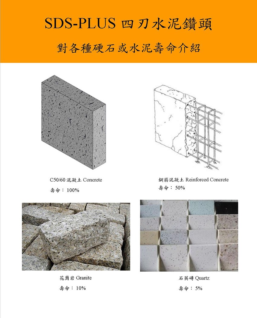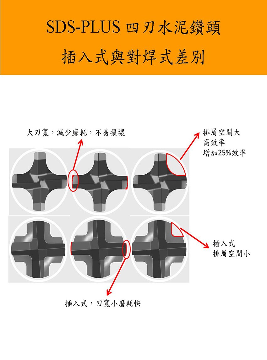 - 外徑磨耗相較於兩刃傳統鑽頭的磨損小,較適合作為錨栓使用。