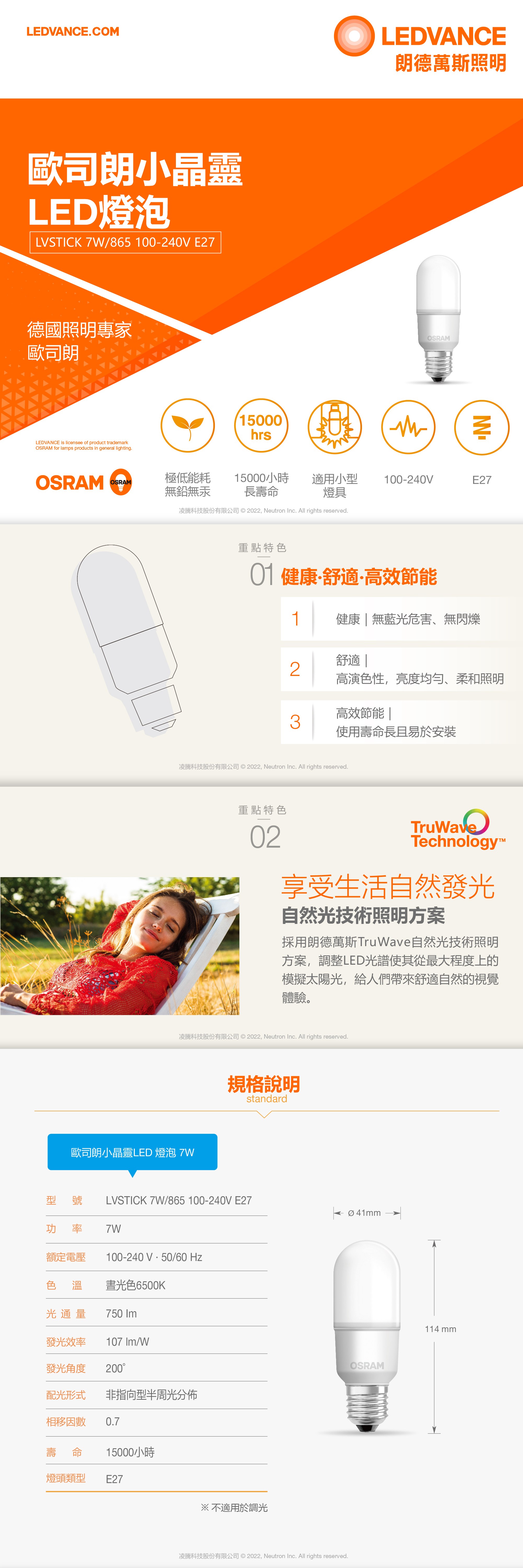 歐司朗 E27 7W LED 燈泡 小晶靈 小雪糕 小燈泡 電燈泡 STICK 白光 黃光 OSRAM