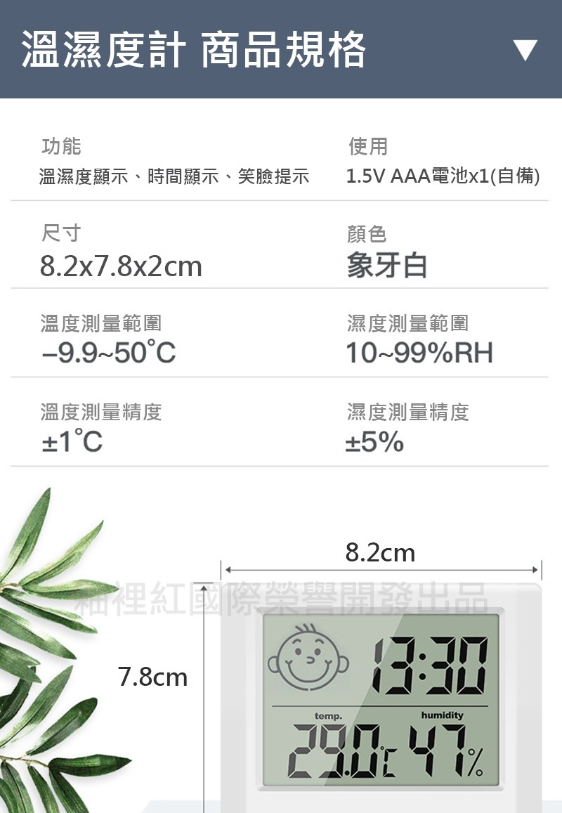 智能電子溫濕度計 白色 輕巧設計 適用於居家/辦公室 隨時監控環境品質 1個