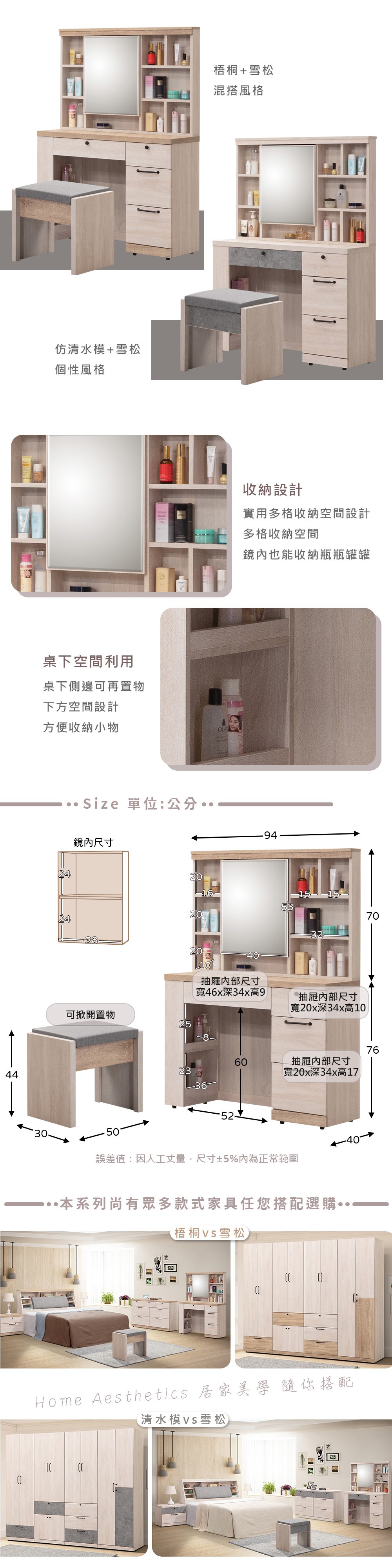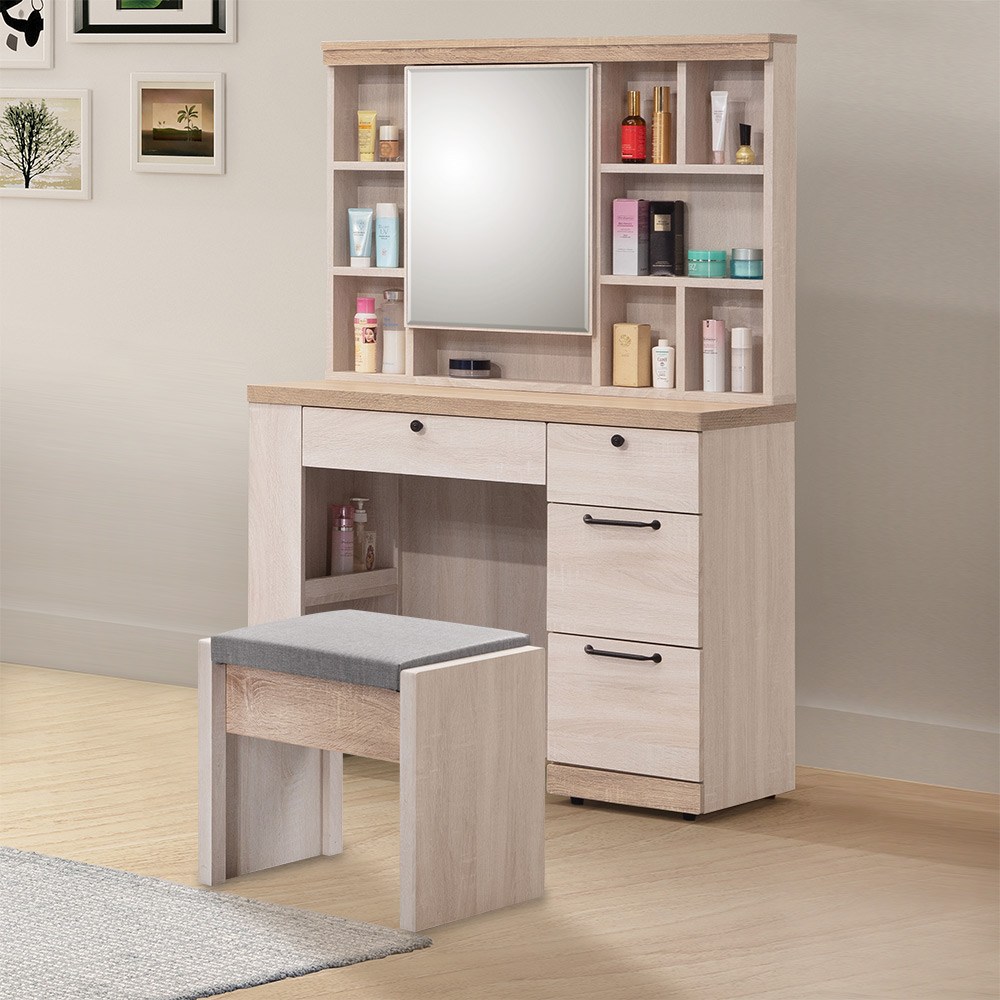 時尚屋 [DV10]莫特白橡3.2尺鏡台含椅DV10-629-免運費/免組裝/鏡台