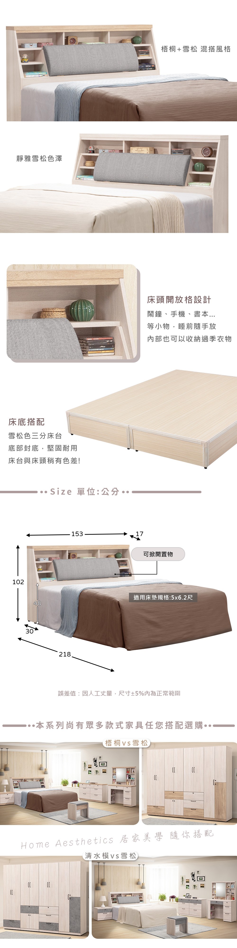 點我下載Homelike 喜家居雙人5尺收納床台組(2色可選)(2233)雪松色