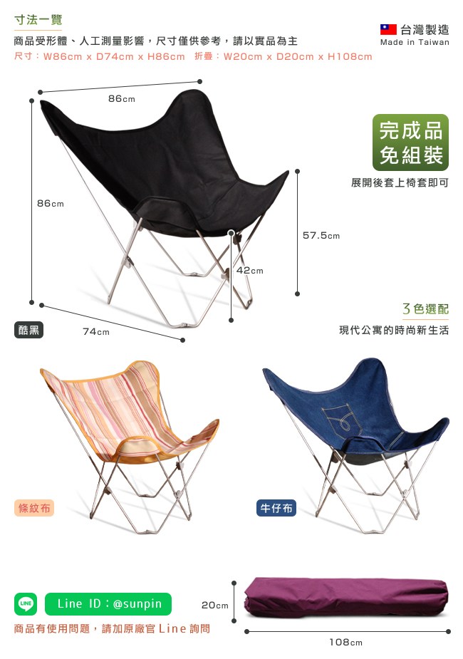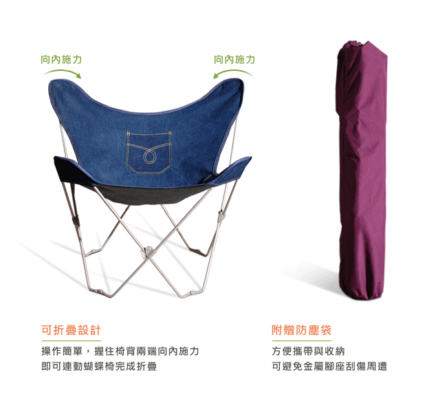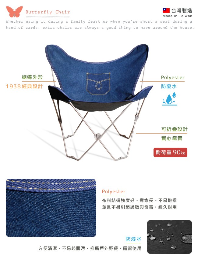 【C'est Chic】小春日和蝴蝶椅(台灣製造)-3色可選 休閒椅 摺疊 戶外 露營