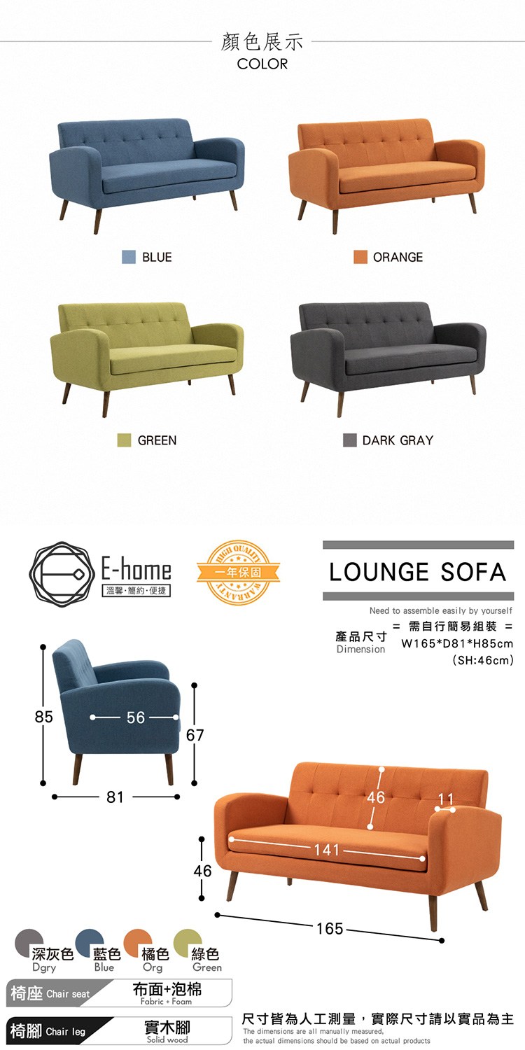 正常使用下,結構保固一年,立即添加到購物車,您將體驗此休閒沙發帶給您的生活變化!