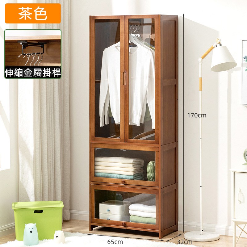 點我下載【HappyLife】多功能透明視窗衣櫃 寬65公分 Y10330茶