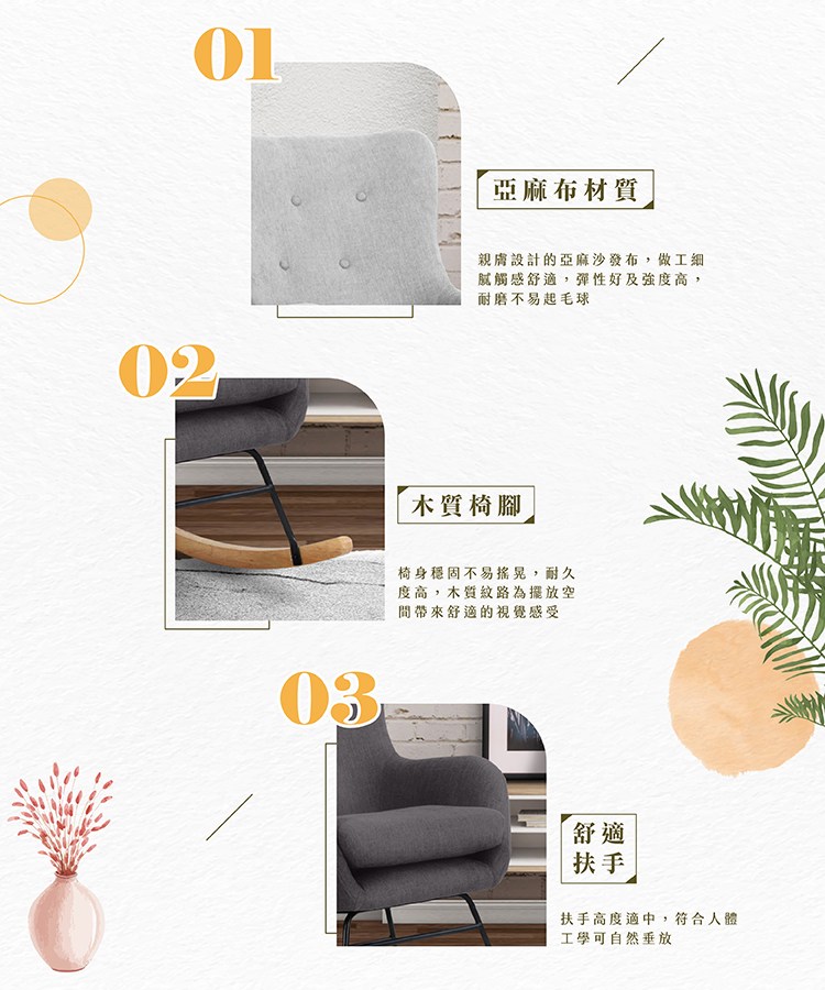 【Hampton 漢汀堡】維多利亞單人搖椅-4色可選石頭灰