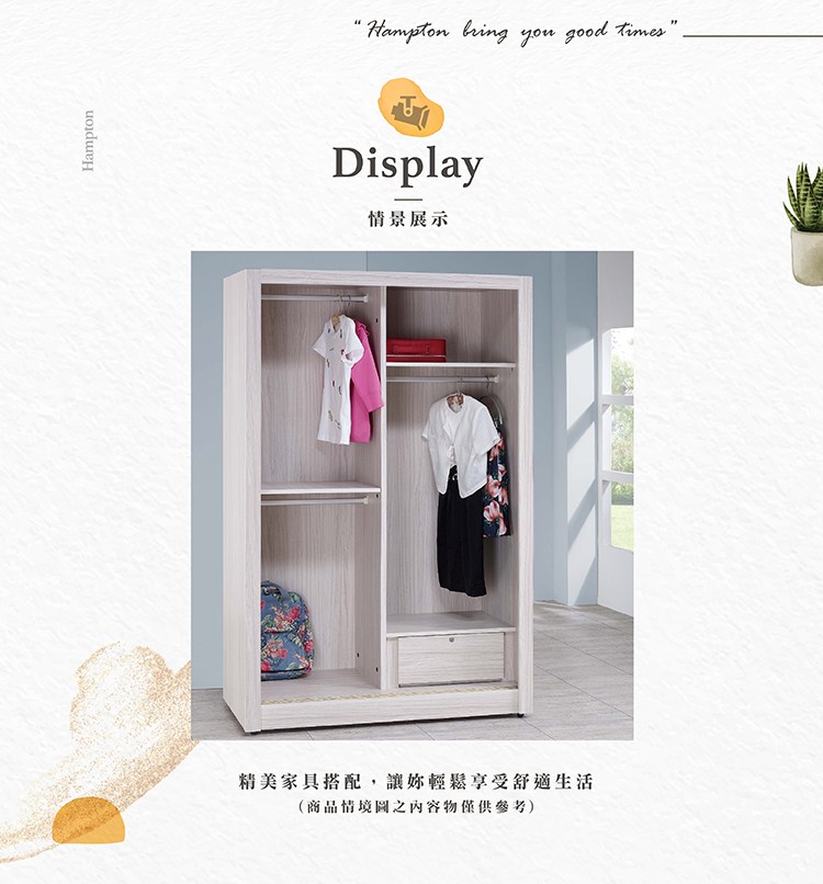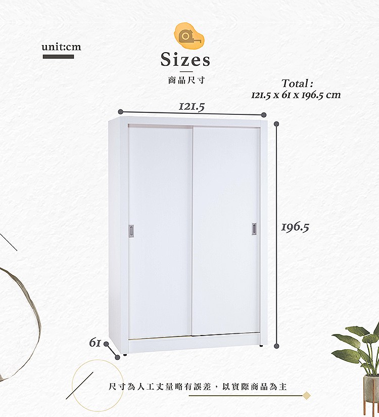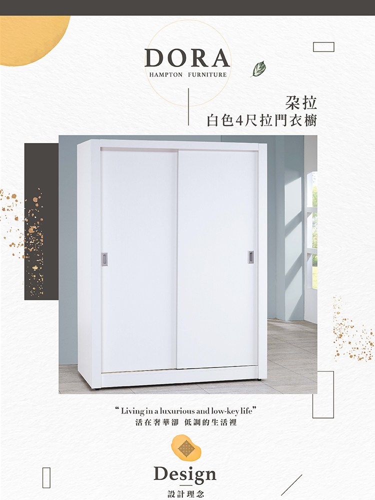 直人木業-DA奶油白榆木雙滑門衣櫃120公分
