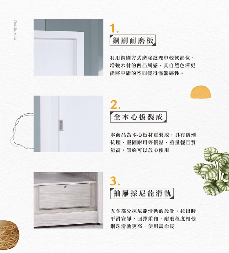 直人木業-RJ北歐奶油風緩衝滑門衣櫃184公分