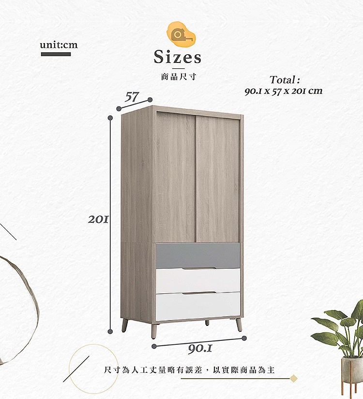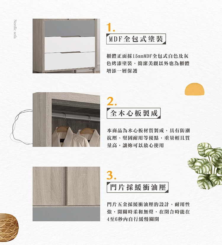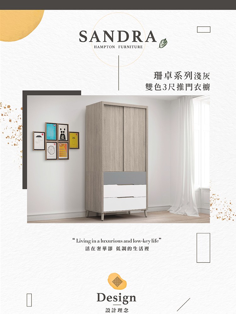 點我下載【Hampton 漢汀堡】珊卓系列淺灰雙色3尺推門衣櫥
