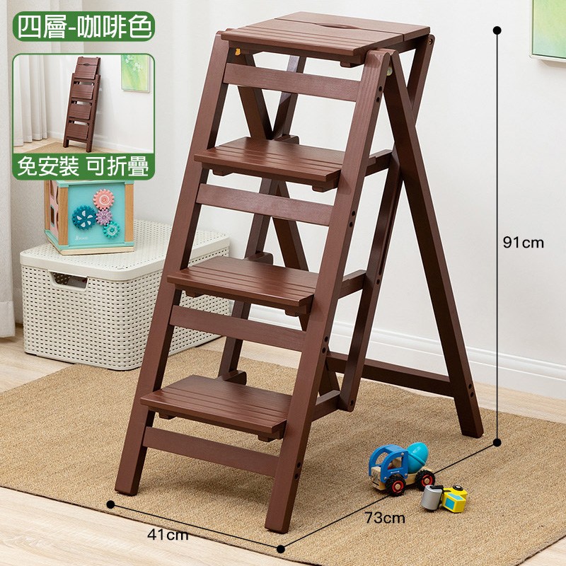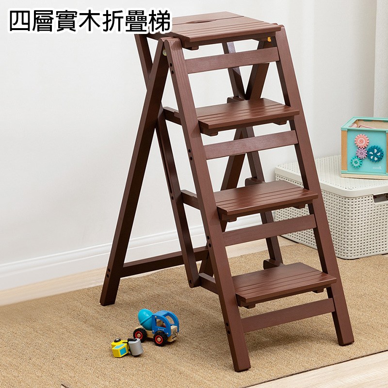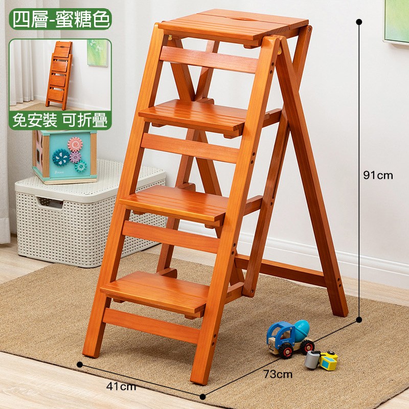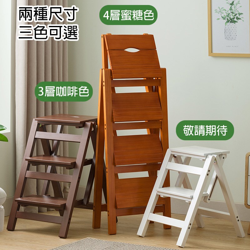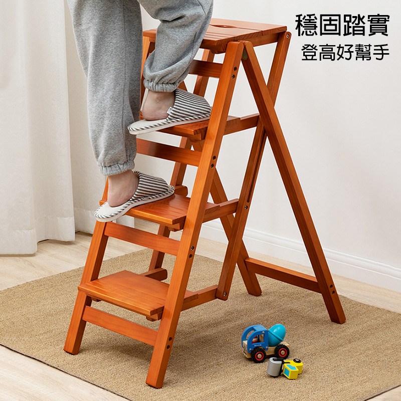 現貨 實木梯凳 家用折叠梯子 省空間多功能加厚梯椅 室內登高三步台階凳 二層