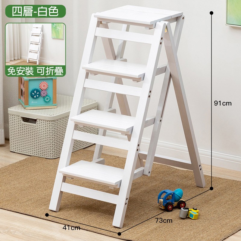 【HappyLife】免安裝實木摺疊梯 四層 Y10511白