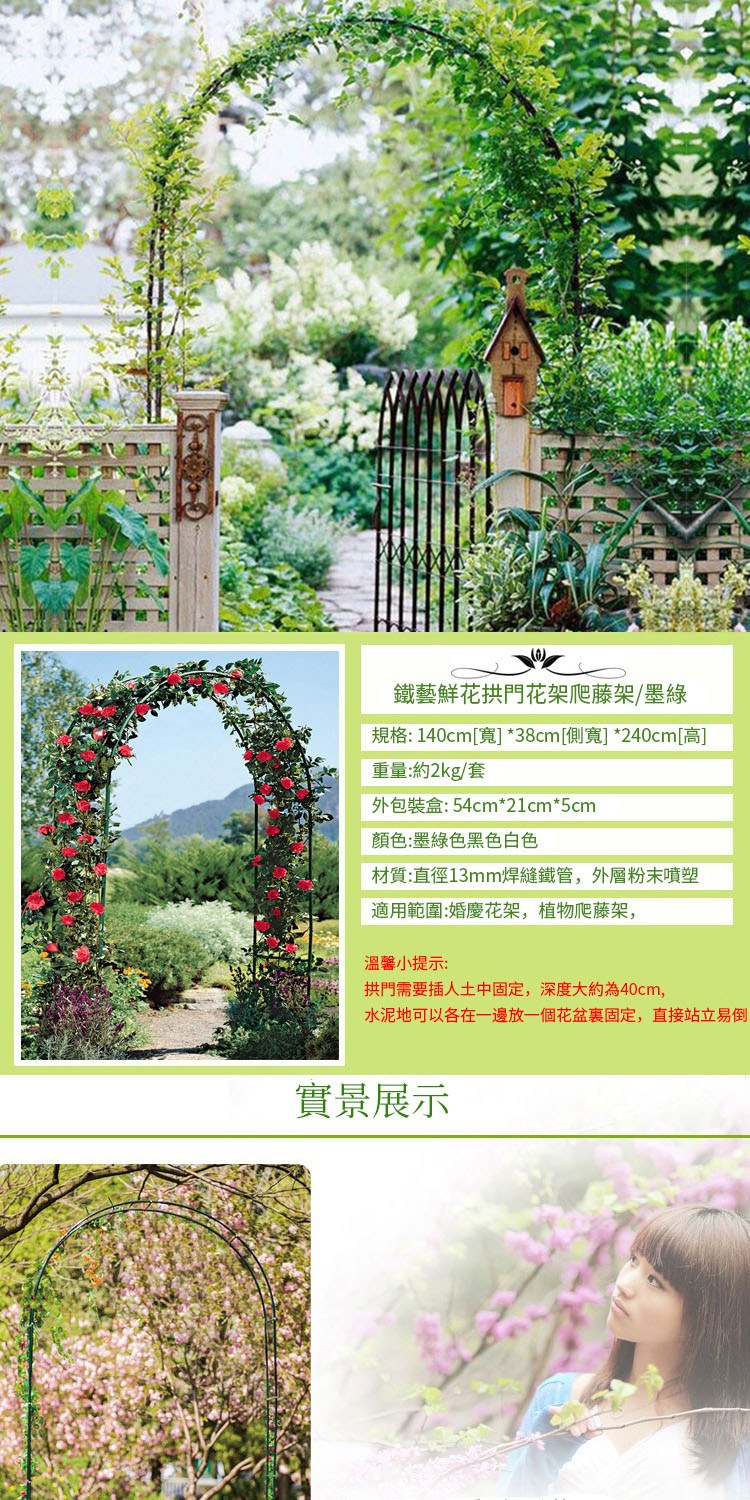 【居家家】戶外庭院鐵藝拱門花架 爬藤架 婚慶支架墨綠