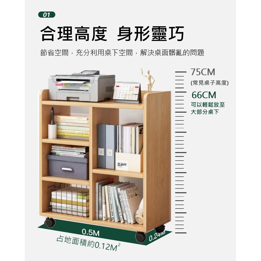 APP下單享點數9% 放書包的置物架可移動小書架帶輪辦公室收納神器桌下收納柜置物柜