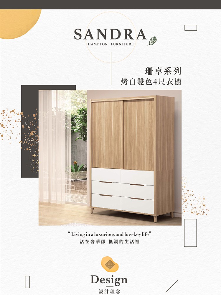 【Hampton 漢汀堡】珊卓系列烤白雙色4尺衣櫥